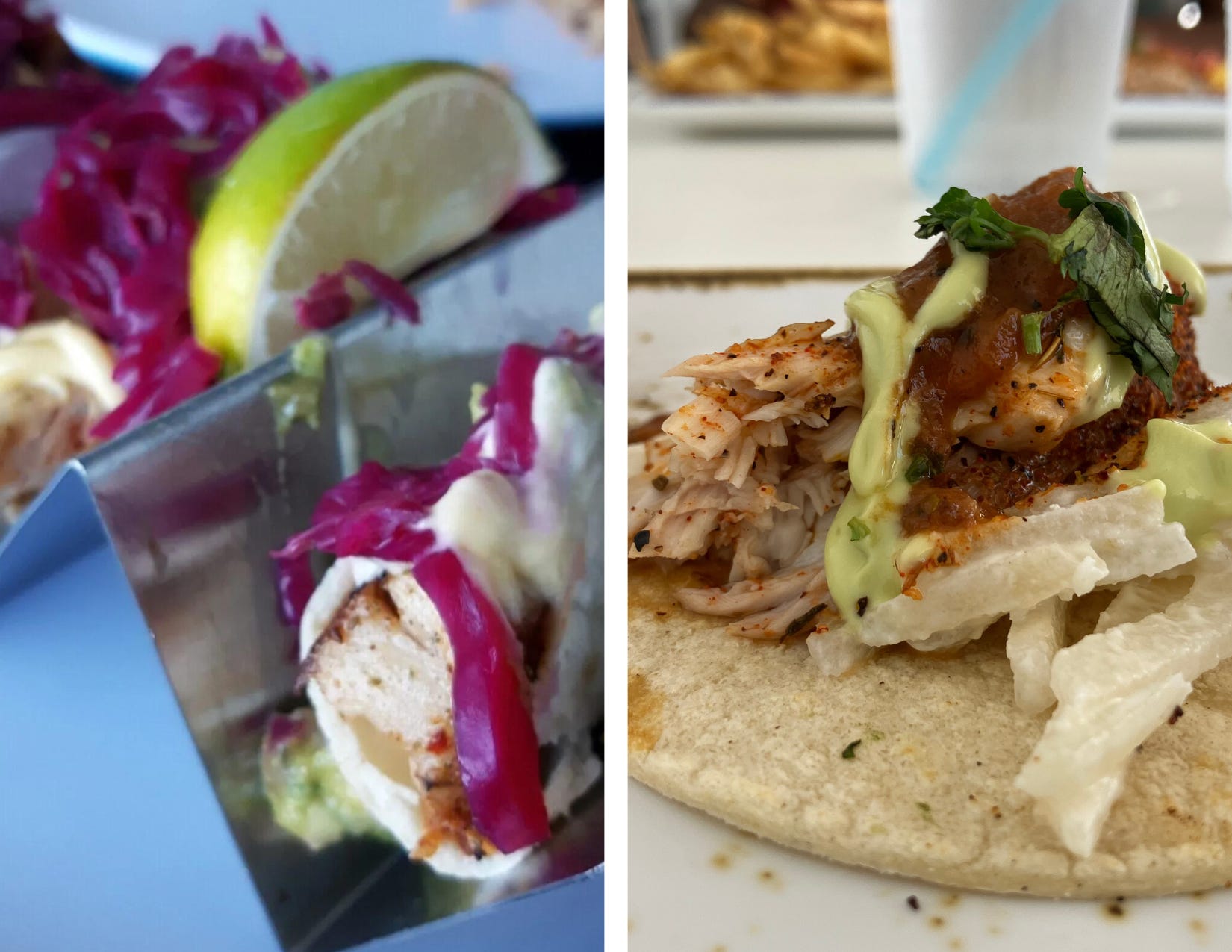 When I visited in 2021, the only restaurant that was open was the beachfront casual-dining restaurant Playa. During my stay last week, every restaurant was open. I was spoiled for choice. Unfortunately, I chose Playa. I was thrilled to see that the three Mahi-Mahi Fish Tacos were still on the menu. My mouth watered as I ordered them, remembering the fresh, crisp, tasty treat that I had eaten for two days straight back then (photo left). However, what I received (photo right) was the opposite of tasty. I guess the saying is true: you can’t go home again. Fortunately, the other restaurants on the property had plenty of delicious culinary delights, so I could create new memories. One, in particular, was a key lime pie from Counterpoint Cafe that was worth the calories.